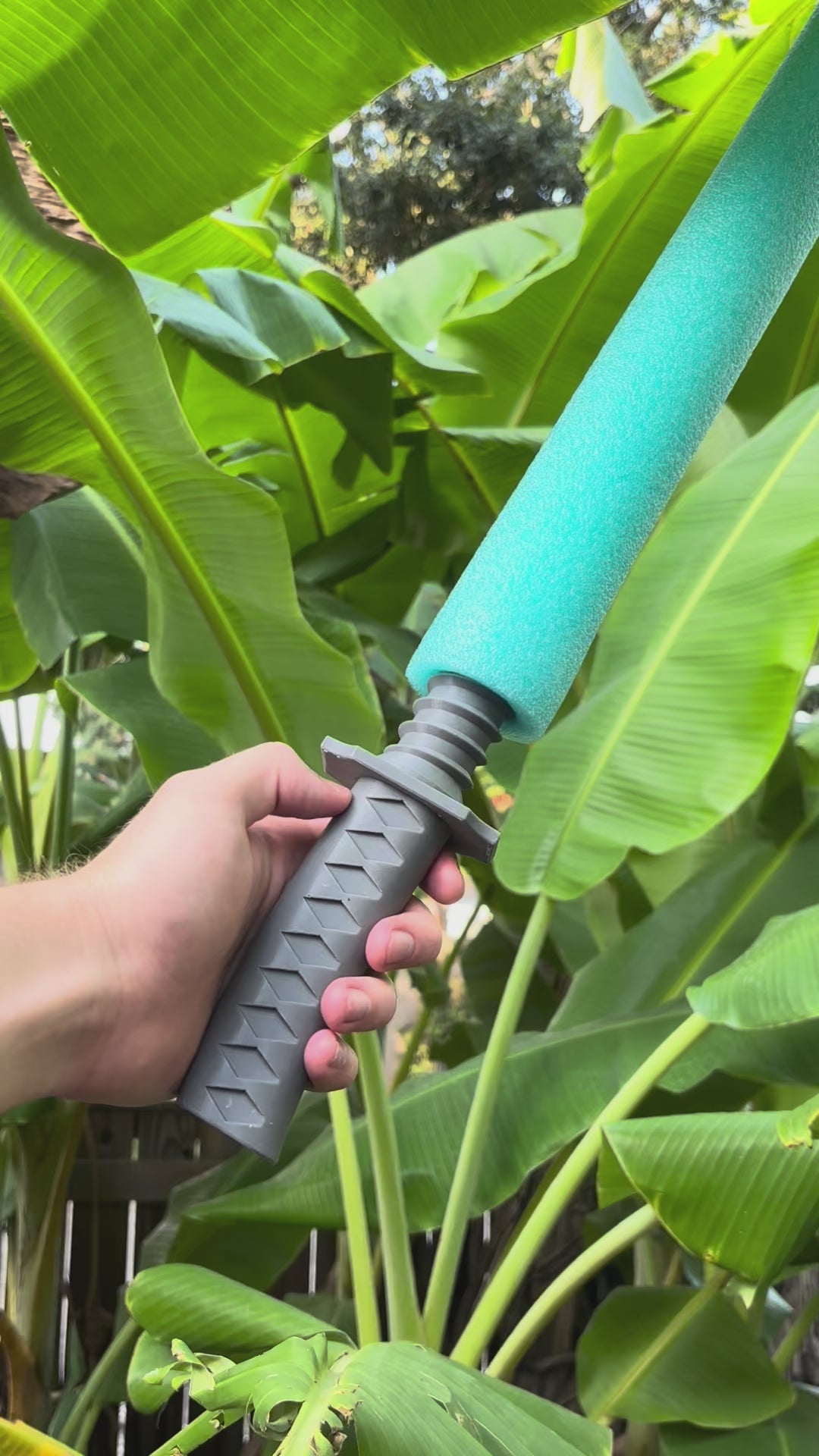 Screw your pool noodle onto our noodle swords. Noodles can be swapped out and the hilts re-used with ease!